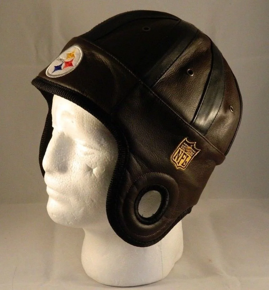 Early professional NFL players wore soft leather “skull caps”, then hardened leather helmets with ear flaps and chinstraps. The Smithsonian’s National Museum of American History catalogues a Rawlings leather helmet dated “ca. 1920”, a representative artefact of what pre-war pros used.