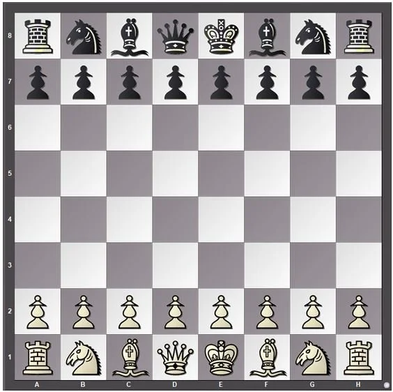 The chessboard is set up with 8 pawns along the 2nd and 7th ranks and all other pieces on the 1st and 8th ranks.